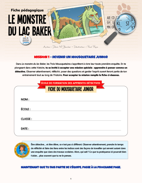 La trousse pédagogique du roman Le monstre du lac Baker a été conçue pour transformer la lecture en véritable expérience d’enquête.