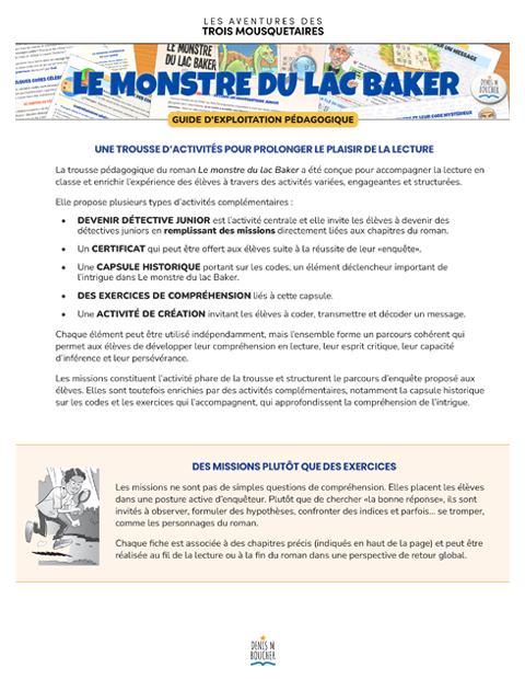 La trousse pédagogique du roman Le monstre du lac Baker a été conçue pour transformer la lecture en véritable expérience d’enquête.